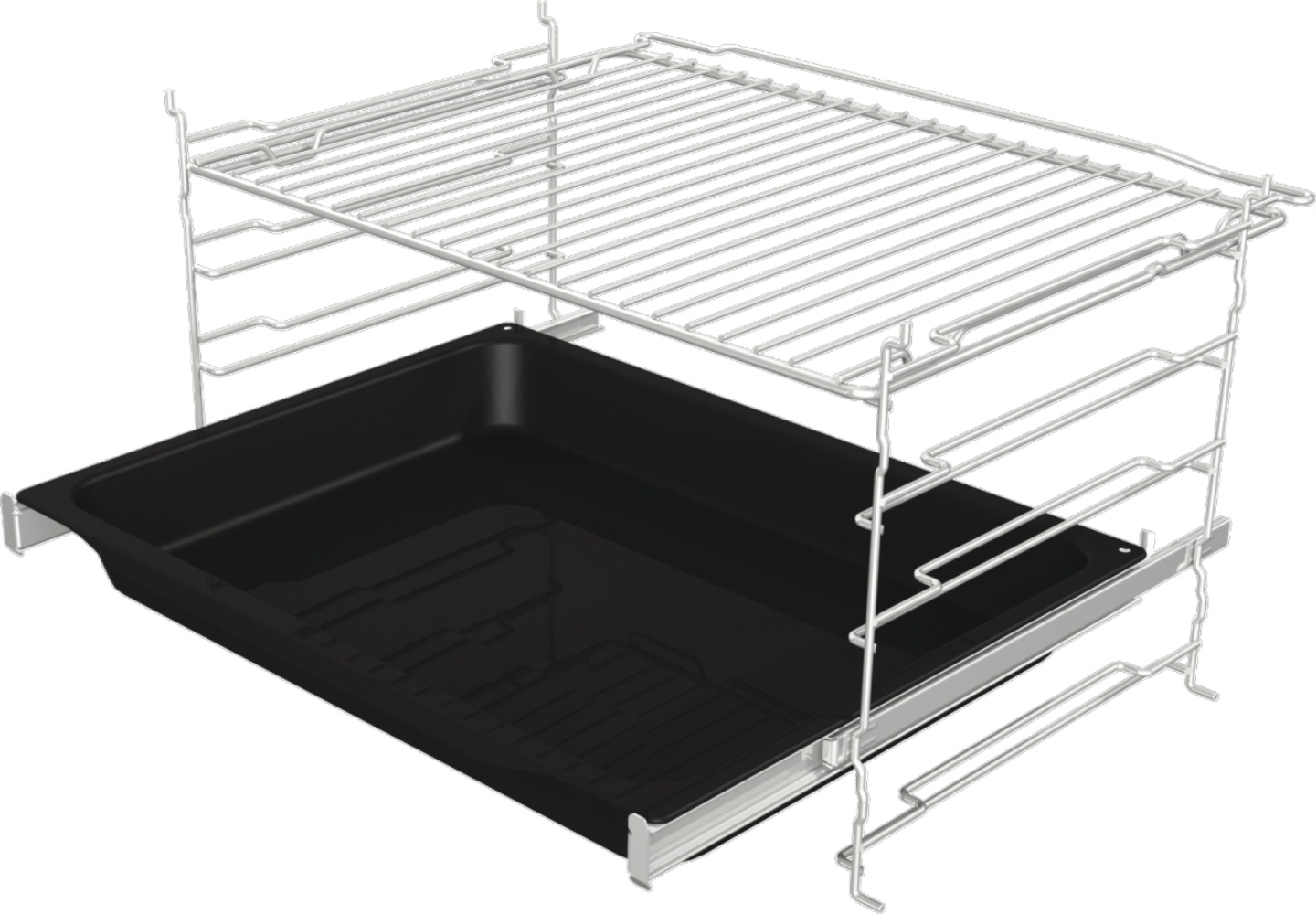 ▪ Телескопические направляющие — полностью выдвижные направляющие обеспечивают безопасный доступ к противню во время готовки.