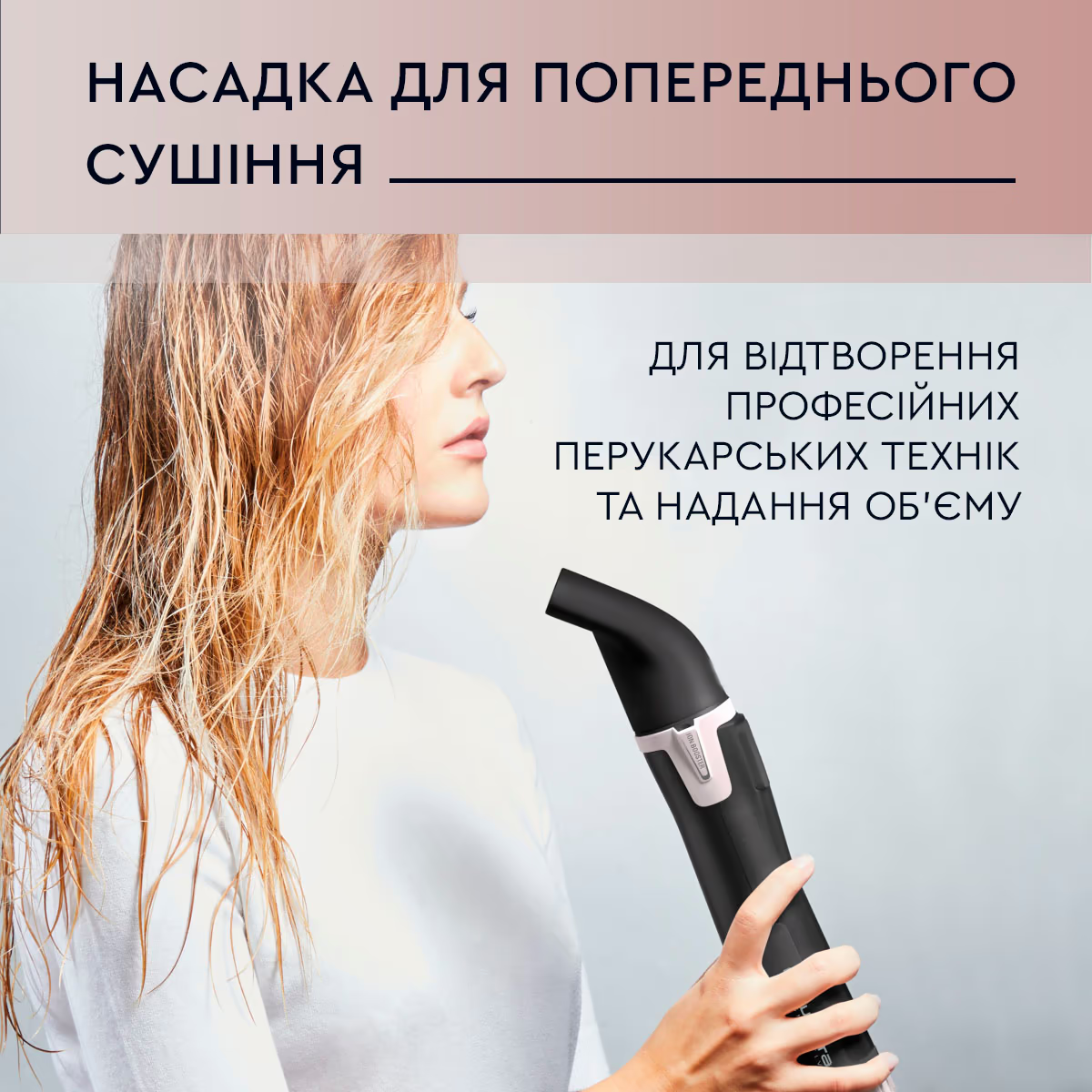 фен-щетка, 2 щетки (50 мм и 40 мм), насадка для предварительной сушки, защитные чехлы для щеток