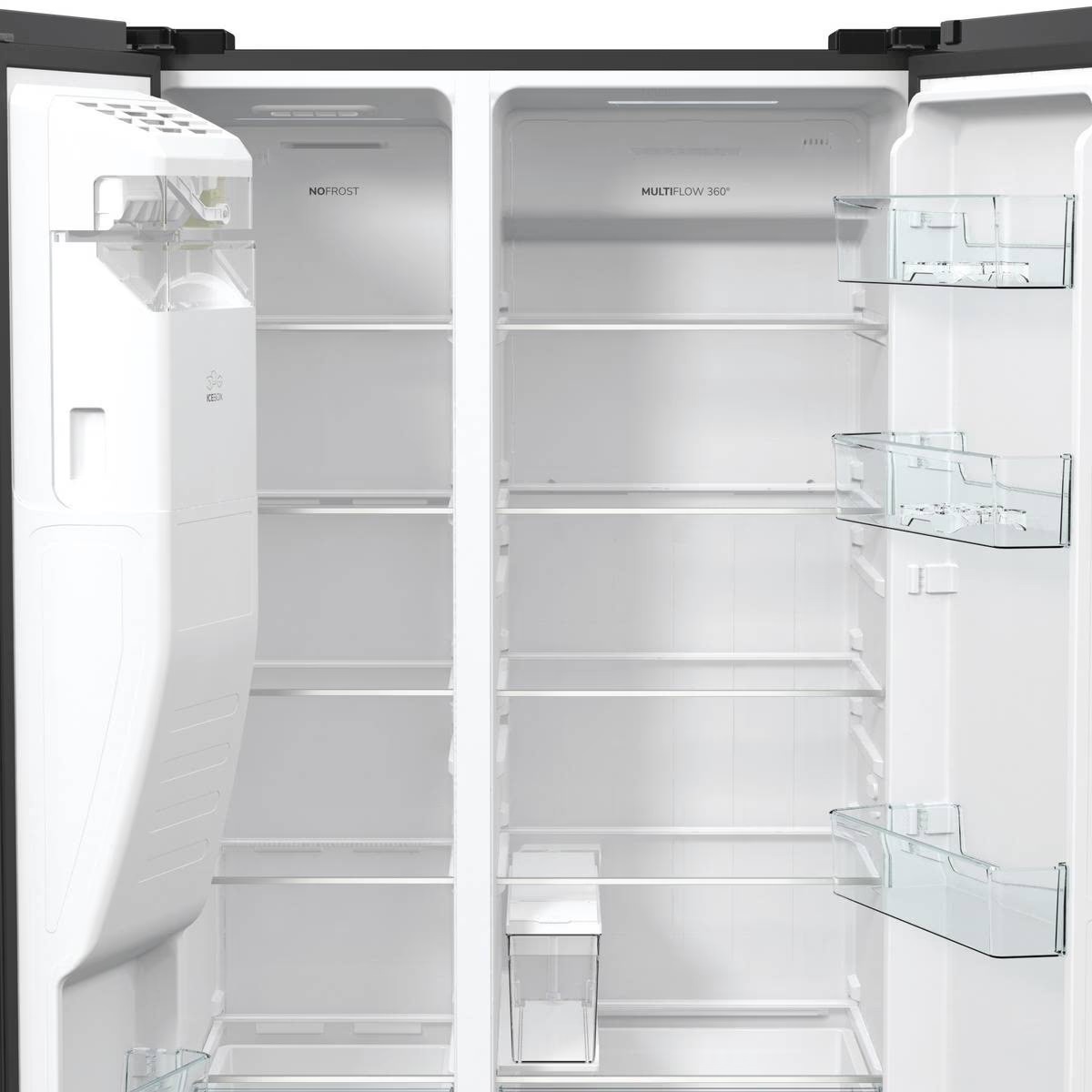 GORENJE NRR9185ESBXL — вместительный холодильник Side-by-Side с системой полного No Frost, инверторным компрессором и удобным диспенсером. Большой внутренний объём, современные функции и продуманная организация камер делают модель практичным решением для большой семьи или для тех, кому требуется много пространства для хранения продуктов.