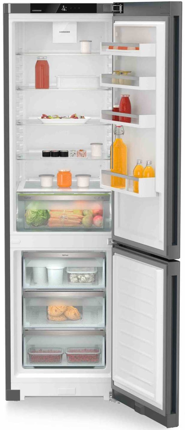 LIEBHERR CNdgc 5703 — это современный холодильник с нижней морозильной камерой, который сочетает высокую вместимость, энергоэффективность класса A+++ и набор инновационных технологий для ежедневного комфорта. Благодаря изысканному тёмно-серому дизайну со стальным фасадом он гармонично впишется в стильный интерьер кухни, обеспечивая при этом надёжность и долговечность.