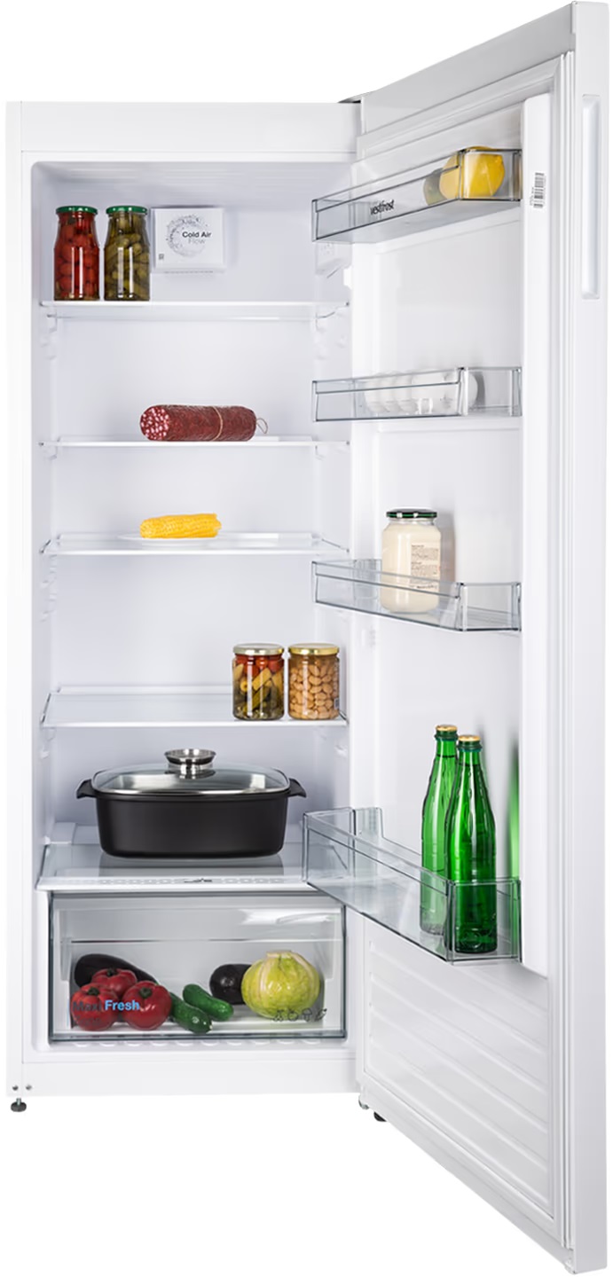 Vestfrost CMR309W — это отдельностоящий холодильник без морозильной камеры объёмом 308 л, который идеально подойдёт тем, кто ищет удобное решение для хранения большого количества свежих продуктов. Благодаря своим габаритам (155 × 59.5 × 65 см) он компактен, но при этом вместителен, что делает его удачным выбором для небольших квартир и студий.