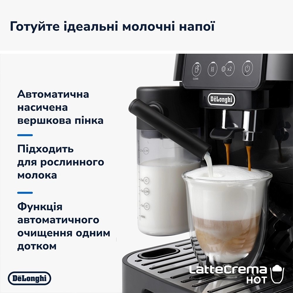 - Автоматическая система вспенивания молока LatteCrema Hot для капучино с идеальной пенкой.