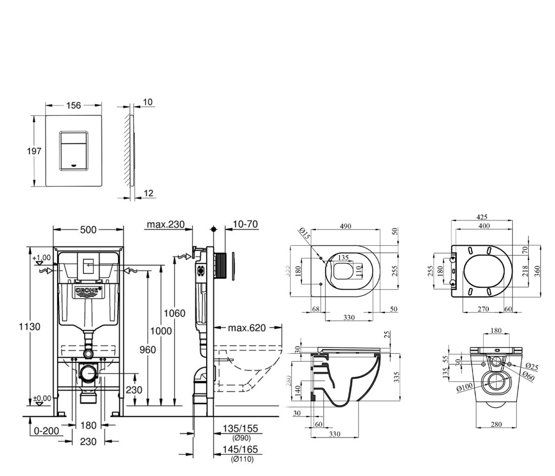 Комплектация Установка, панель смыва, унитаз, сиденья Slim Duroplast, крепежные детали.