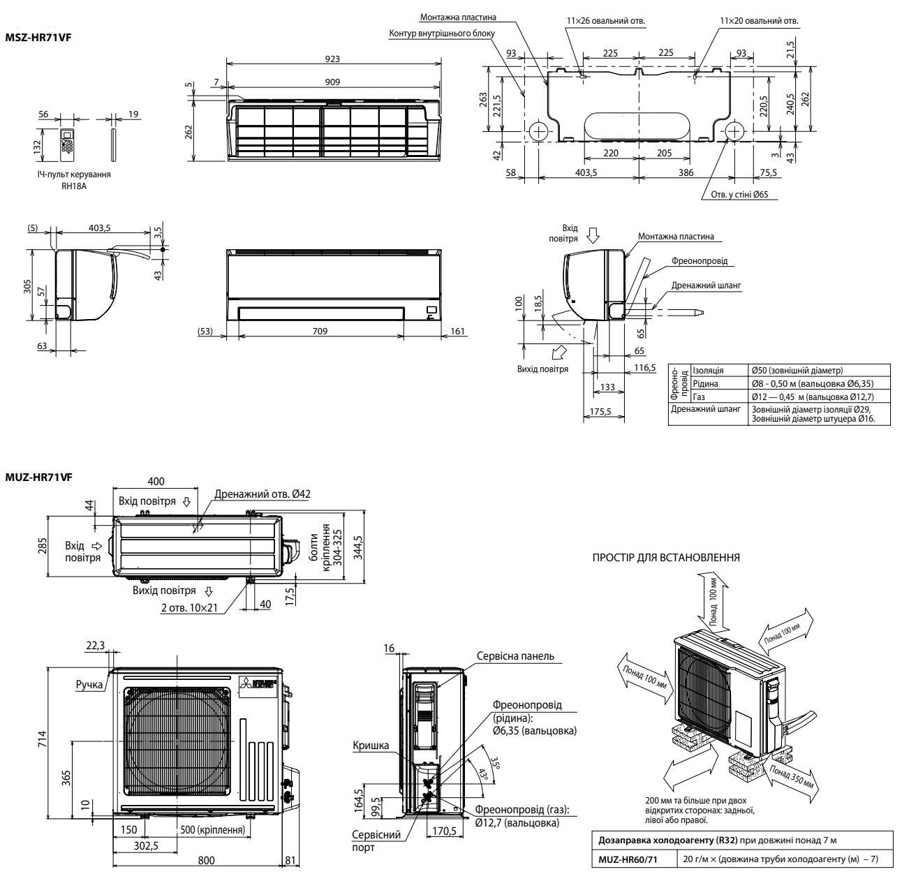 Габариты внешнего блока (ВхШхГ), мм | 714 × 800 × 285 |
