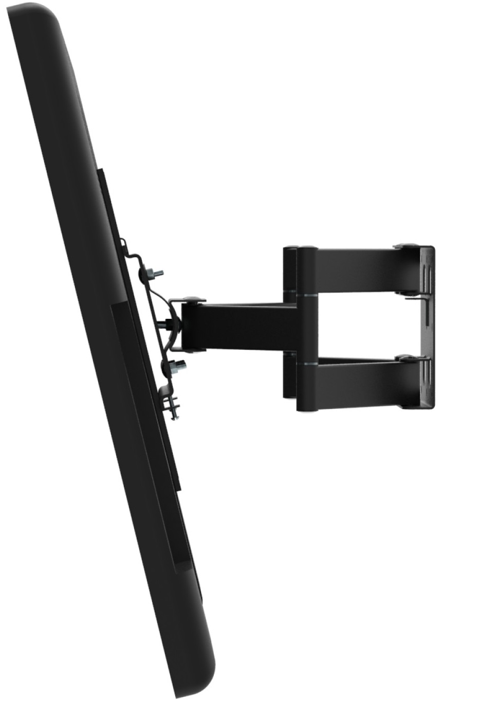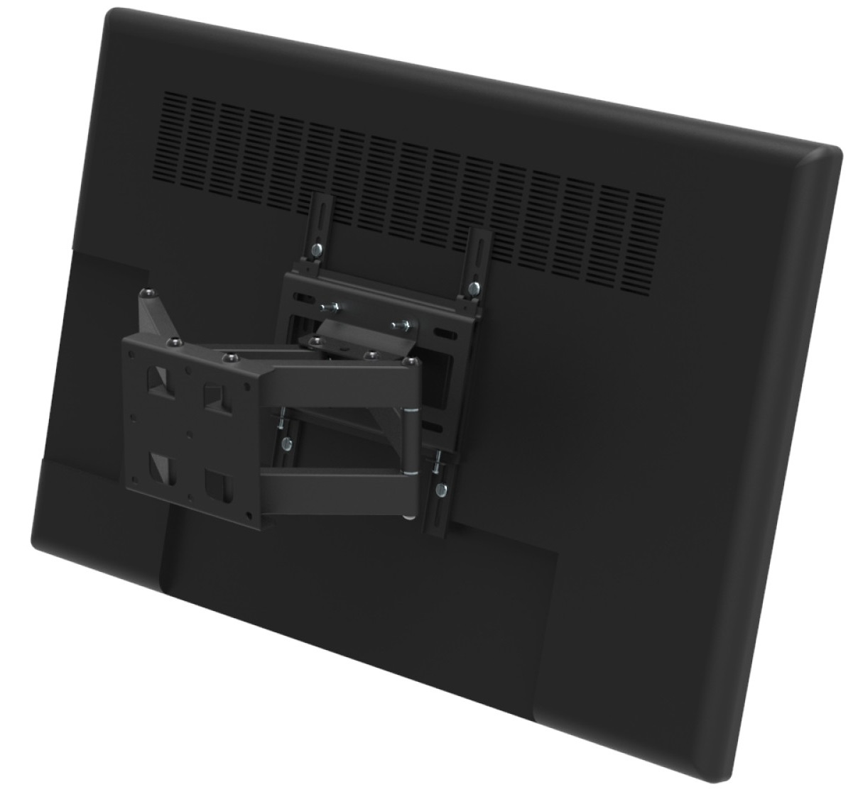 Кронштейн позволяет без инструментов изменять положение экрана: поворачивать, наклонять, регулировать по горизонту и перемещать в разных направлениях для удобного просмотра.