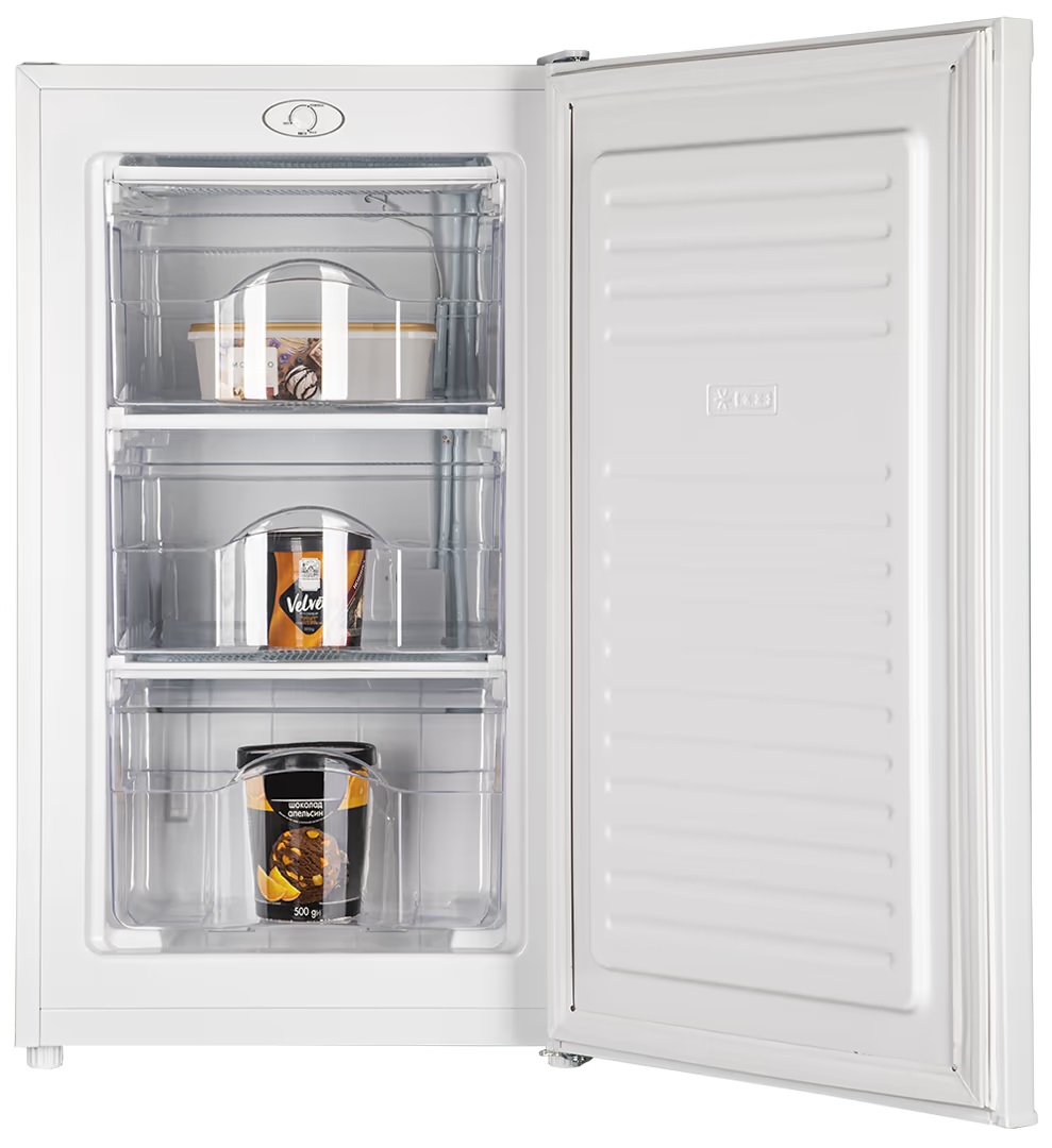(84 × 48 × 50 см) делает эту морозильную камеру отличным решением для небольших пространств. Белый корпус с лаконичным дизайном гармонично впишется в любой интерьер — от современной кухни до кладовой или офиса. Модель отличается стабильной работой даже при колебаниях температуры окружающей среды в диапазоне от +18°C до +38°C.