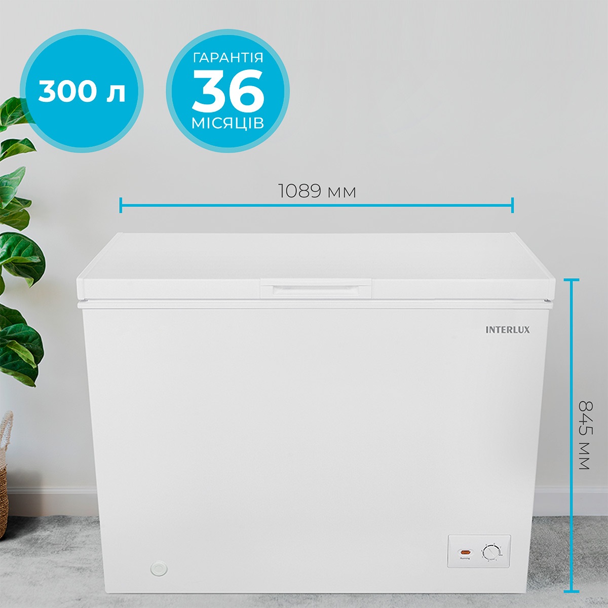 - ▪ Гарантия качества: модель произведена в Китае, бренд INTERLUX зарегистрирован в Украине. На морозильный ларь предоставляется 36 месяцев официальной гарантии.