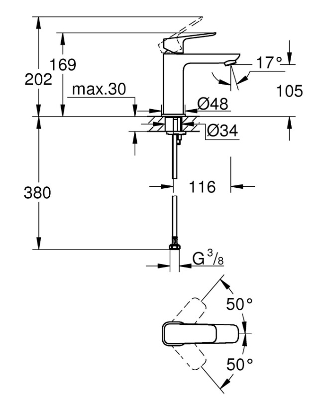 GROHE FastFixation (регулируемый верхний кронштейн для отверстий)
