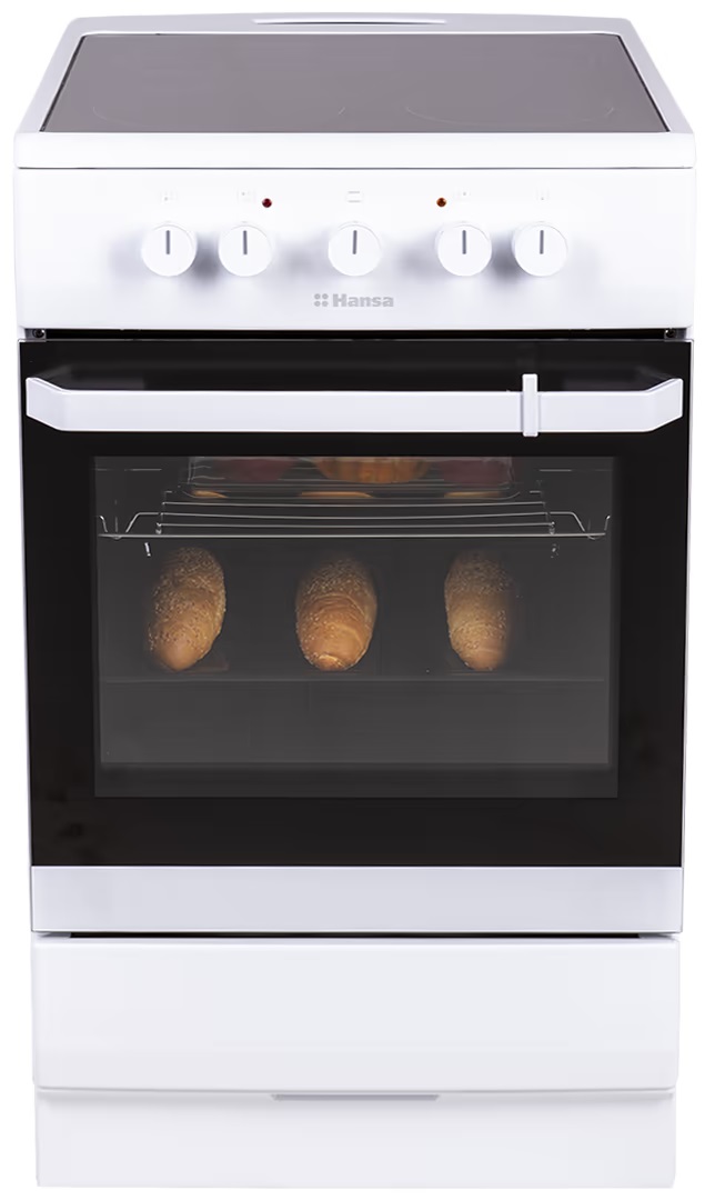 Hansa FCCW53000 — это простая, надёжная и вместительная электрическая плита, подходящая для повседневного приготовления. Быстрые зоны нагрева HiLight, духовой шкаф увеличенного объёма и удобные рельефные направляющие делают модель оптимальным выбором для кухонь, где важны стабильные результаты и неприхотливый уход.