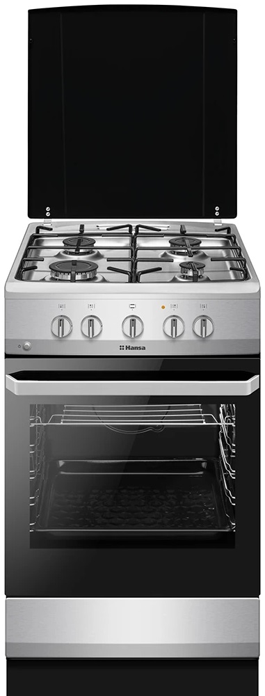Газовая плита Hansa FCGX58099 создана для тех, кто стремится совместить экономичность, современный дизайн и практичность в ежедневном приготовлении. Она отличается классом энергоэффективности А, удобными решениями для ухода и безопасным использованием, что делает её оптимальным выбором для семейной кухни.