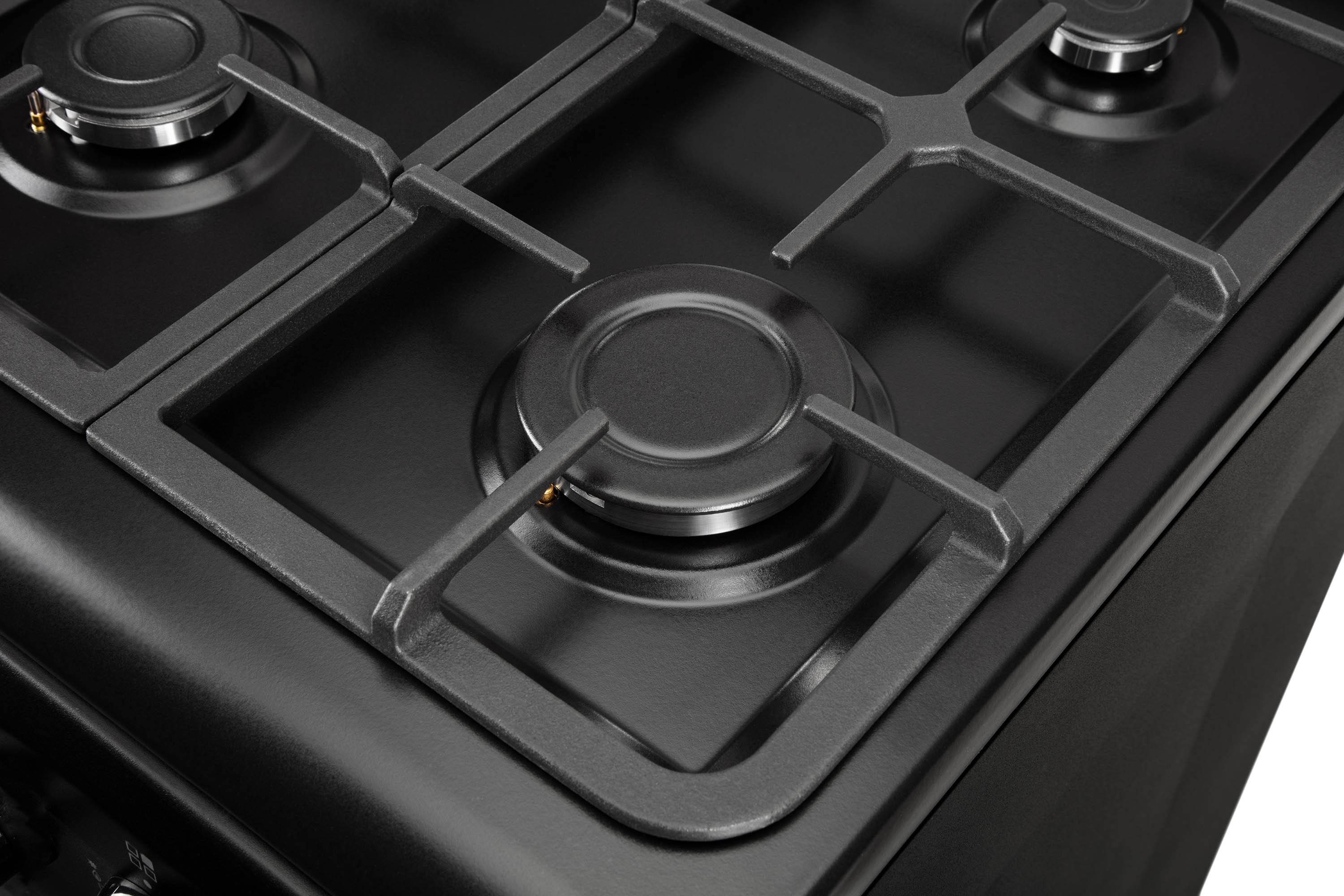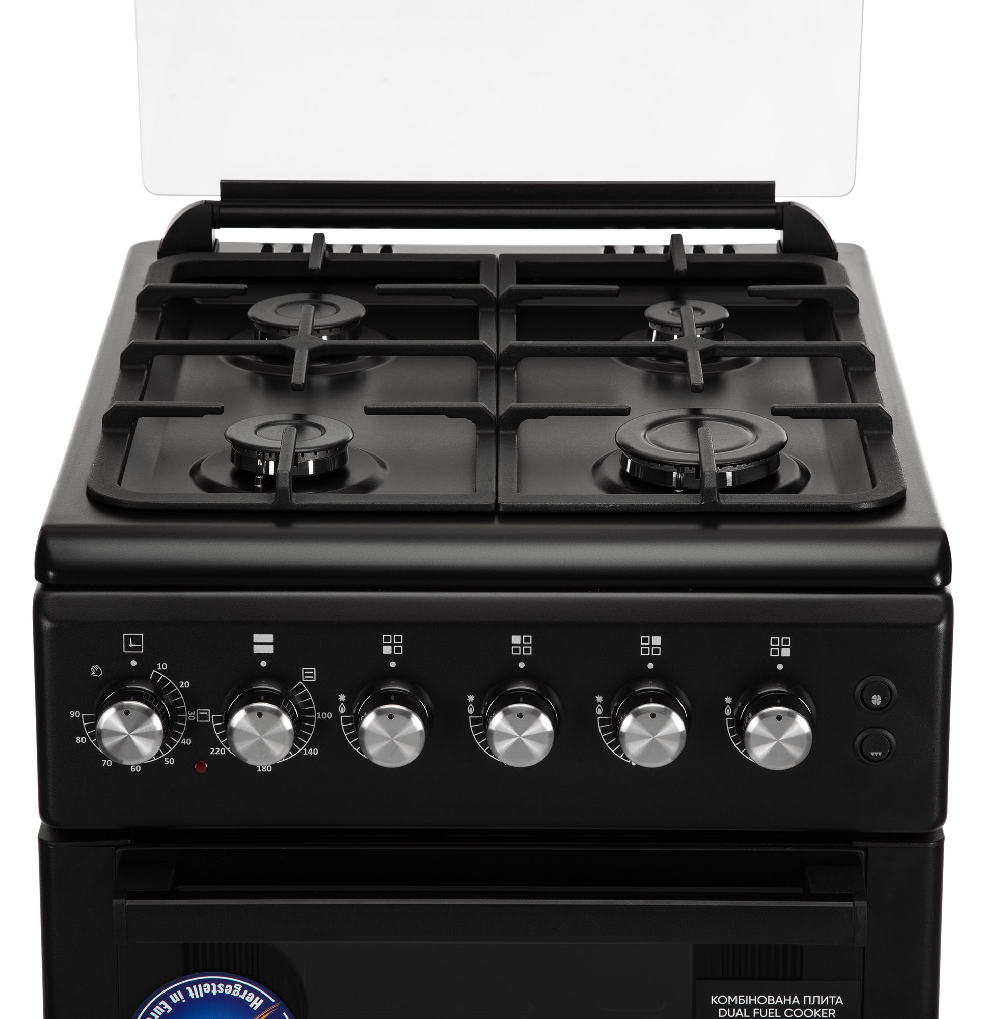 Модель Ardesto FSC-F5060PB сочетает классический дизайн, удобство и функциональность. Чёрный металлический корпус дополнен стеклянной крышкой, чугунными решётками и комфортными поворотными ручками с автоматическим электроподжигом. Газовая варочная поверхность с четырьмя конфорками работает в паре с электрической духовкой объёмом 52 л, что позволяет готовить практически любые блюда. Духовка оснащена подсветкой, грилем, конвекцией и съёмным внутренним стеклом Cool Door. В комплект входят решётка, стандартный и глубокий противни, а также форсунки для сжиженного газа LPG.