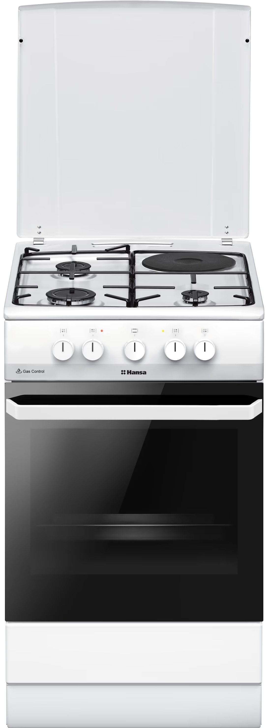 Hansa FCMW54000H — комбинированная кухонная плита с газовой варочной поверхностью и электрической духовкой объёмом 68 литров, которая обеспечивает удобство в ежедневном приготовлении блюд. Благодаря простому механическому управлению, автоматическому электроподжигу, функции газ-контроля и практичной конструкции эта модель станет надёжным решением для домашней кухни.