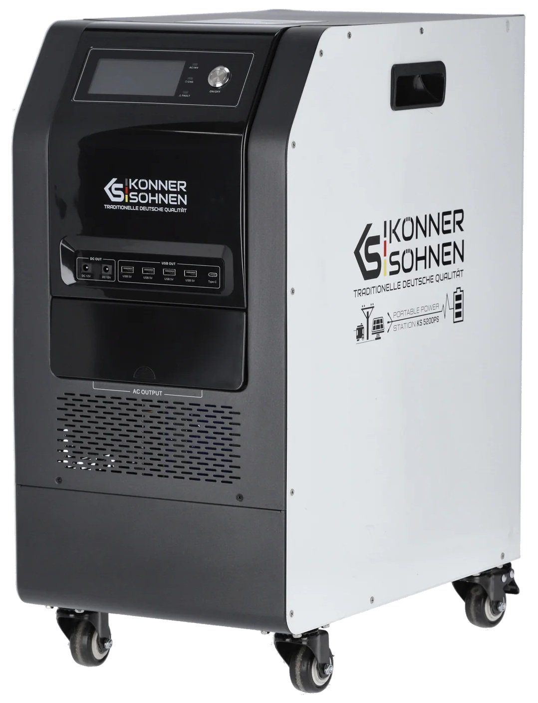 Konner&Sohnen KS 5200PS-NEW — это мощная портативная электростанция 5200 Вт с аккумулятором 5120 Вт·ч, поддержкой солнечной зарядки до 5 кВт и функцией ИБП. Рациональный выбор для резервного или полностью автономного питания дома, офиса или объектов без доступа к сети, когда ключевыми являются надёжность, стабильность и длительный ресурс работы.