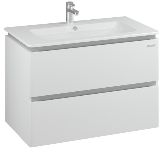 Подвесная тумба с умывальником. Ширина 810 мм. Высота 575 мм. Глубина 460 мм. Материал МДФ. У данной коллекции несколько ключевых отличий: первоклассный импортный керамический умывальник (Турция), внутреннее наполнение ящиков в цвете темно-серый графит, белые рейлинги, толстые фасады из 19мм МДФ, боковины МДФ, декоративная вставка RENOLIT (Германия) с имитацией крашенного шпона. Страна происхождения Украина.