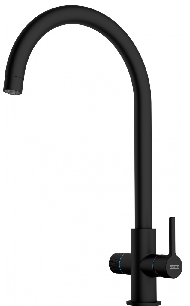 Смеситель с невытяжным поворотным изливом с подключением к системе фильтрации воды, в том числе с обратным осмосом. Рычаг открывается вперед на угол 90°, поэтому можно производить монтаж вплотную к стене. Угол поворота излива составляет 360° назад водяной поток достигает большей площади мойки, а также такой смеситель можно монтировать в острове кухни. Аэратор насыщает водяной поток воздухом, благодаря чему лучше работают моющие средства, а также экономится вода.