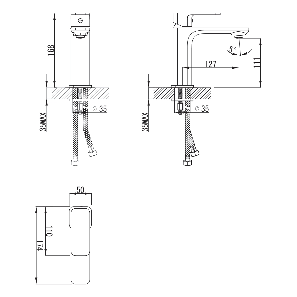 Смеситель для умывальника, керамический картридж 35мм от Sedal, Испания; аератор от Neoperl, Германия; подходит для проточных нагревателей; цвет: хром. Высота смесителя 168 мм. Высота излива 111 мм. Длина излива 127 мм. Гарантия 5 лет. Страна производитель Чехия.