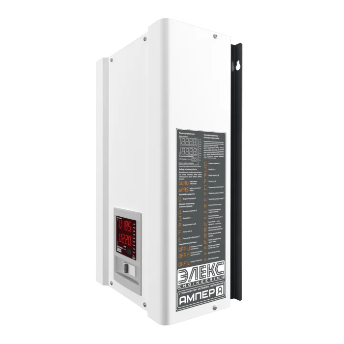 К особенностям данного стабилизатора можно отнести двойной светодиодный экран, линейную полосу загрузки, наличие электронного транзита (байпас), удобное расположение клеммной колодки для подключения на задней части корпуса, бесшумную работу за счет использования в качестве силовых ключей симисторов..