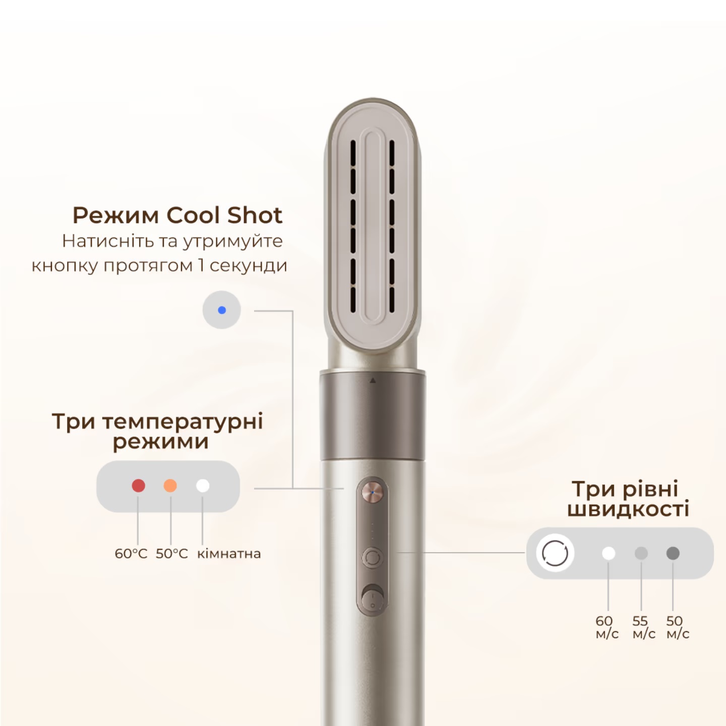 - ▪ Три температурных режима для разных типов волос