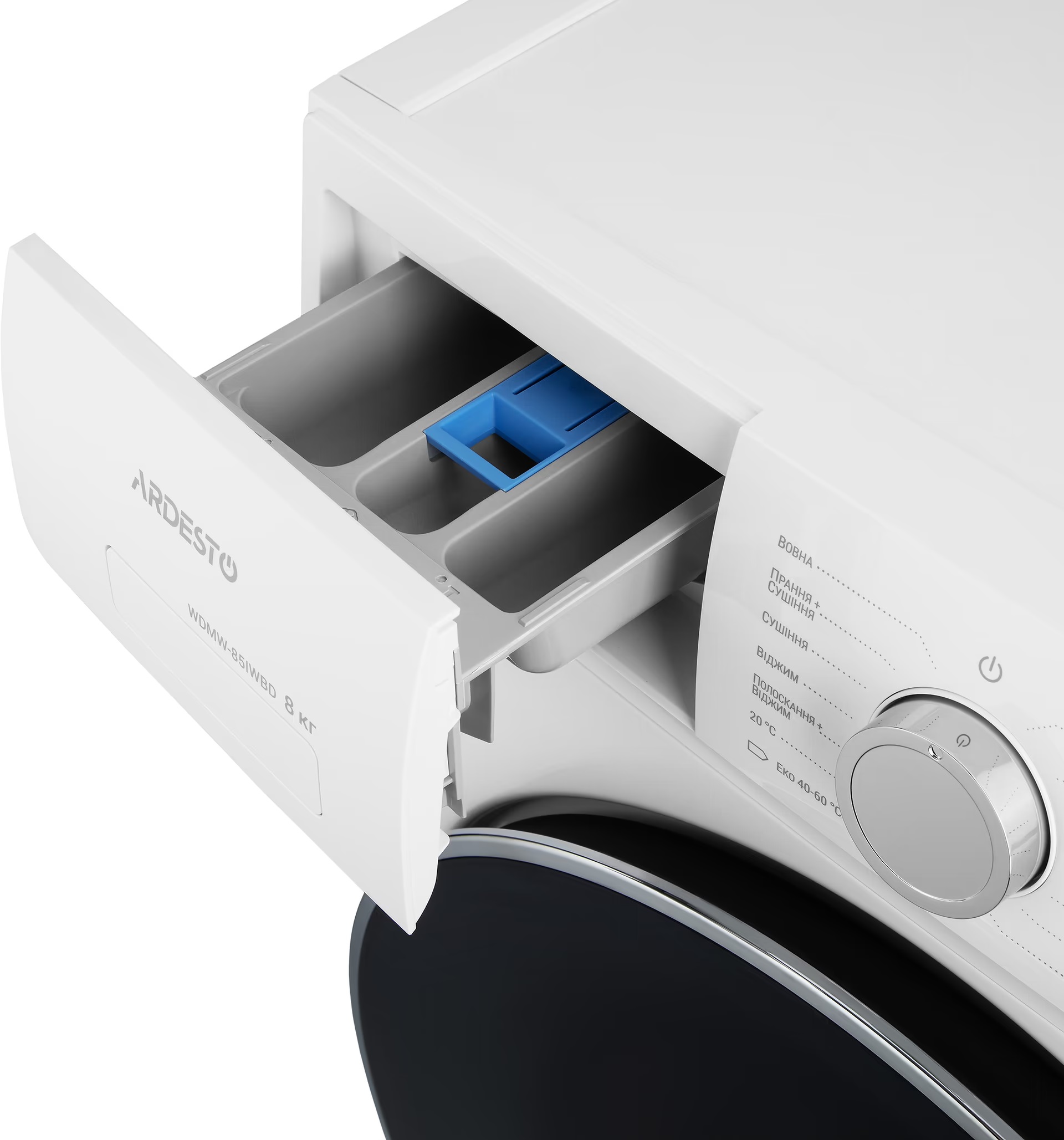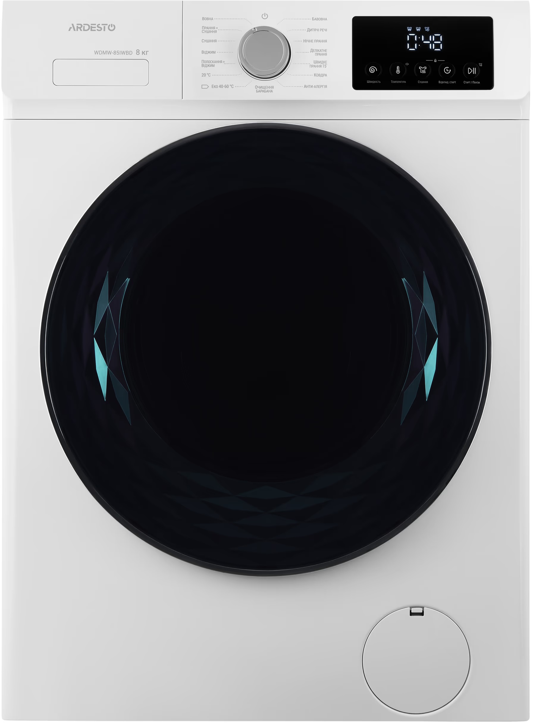 ARDESTO WDMW-85IWBD — это современная фронтальная модель, которая сочетает функции стирки и сушки в одном устройстве. Максимальная загрузка для стирки составляет 8 кг, а для сушки — до 5 кг, что позволяет эффективно обрабатывать большие объемы белья без необходимости использования отдельной сушильной машины.