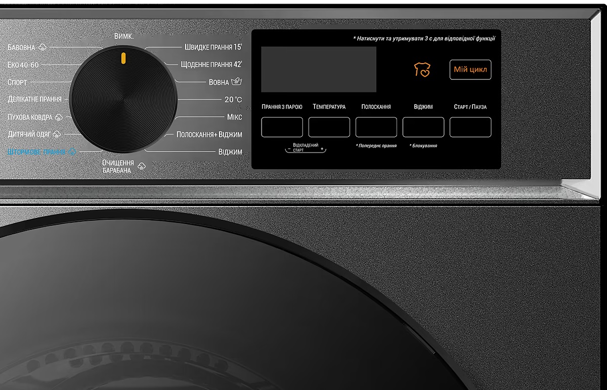 - ▪ Функции управления: выбор температуры ▪ выбор скорости отжима ▪ дополнительное полоскание