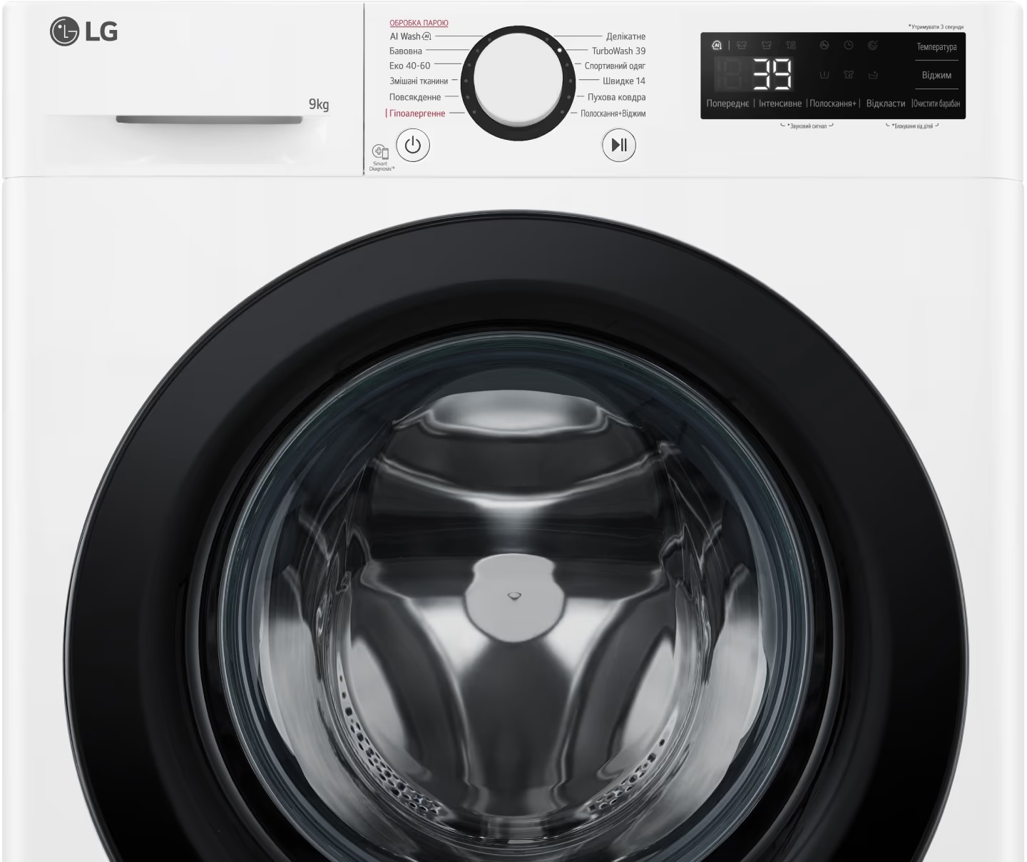LG F2Y5FS6W — стиральная машина 9 кг с AI DD, Steam и прямым инверторным приводом