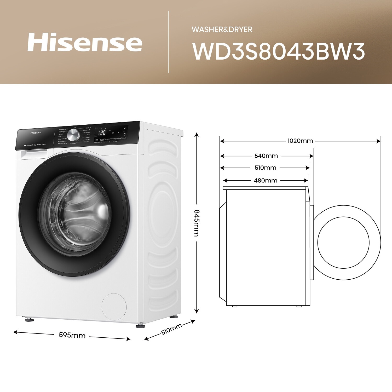 HISENSE WD3S8043BW3/UA — современная стирально-сушильная машина, способная стабильно работать даже при ежедневном использовании. Инверторный двигатель обеспечивает плавную и тихую работу, а программа Auto Wash автоматически подбирает параметры стирки в зависимости от типа ткани.
