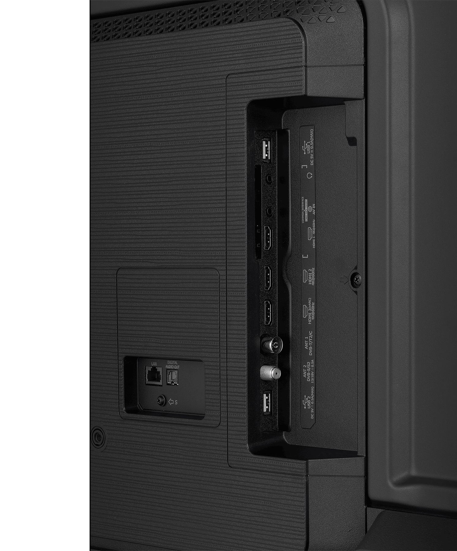 - 3 × HDMI 2.1, 2 × USB 2.0, Ethernet, RF-in, CI+, оптический выход