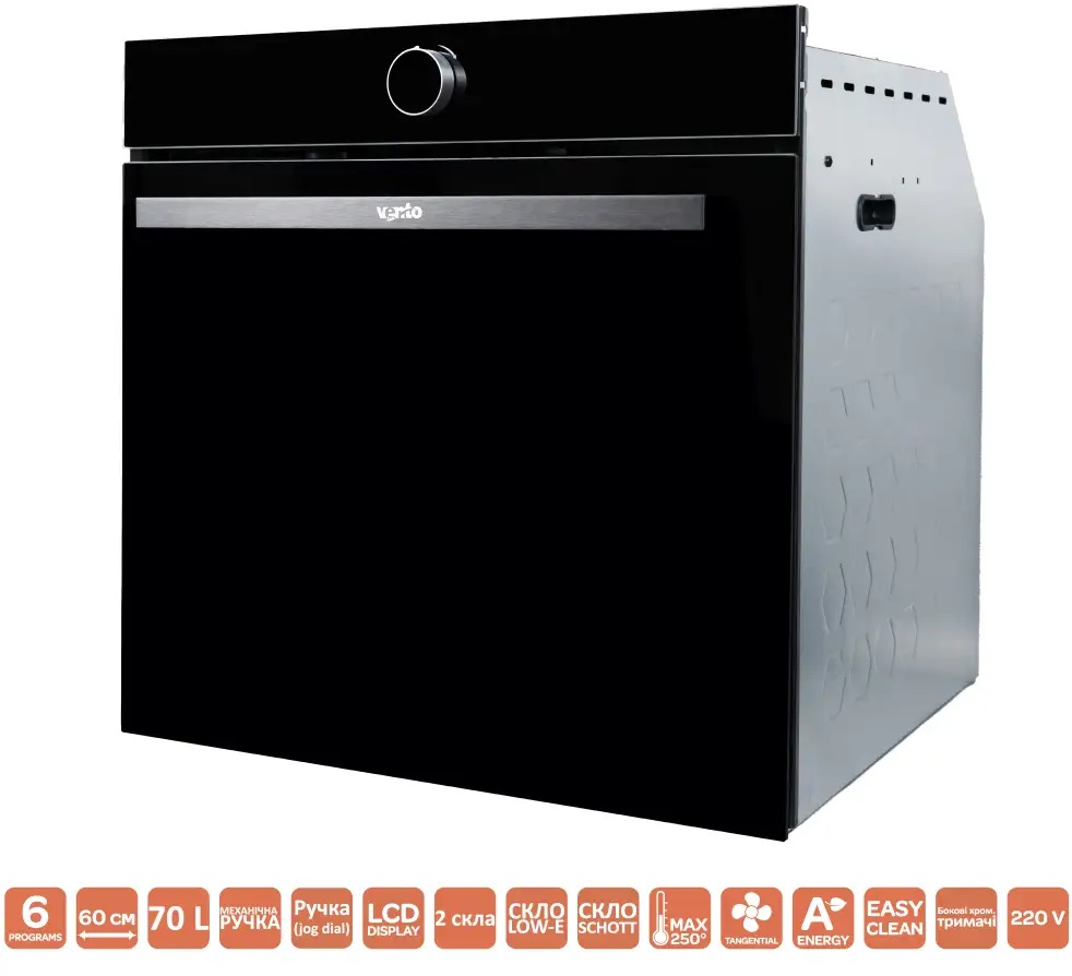 ✅ VENTOLUX MONTE CARLO 6 RTC (BG) — це практична і сучасна духова шафа з великим об’ємом, 6 режимами приготування та стильним чорним дизайном. Вона стане чудовим вибором для тих, хто цінує комфортне керування, функціональність і надійність на щодень.
