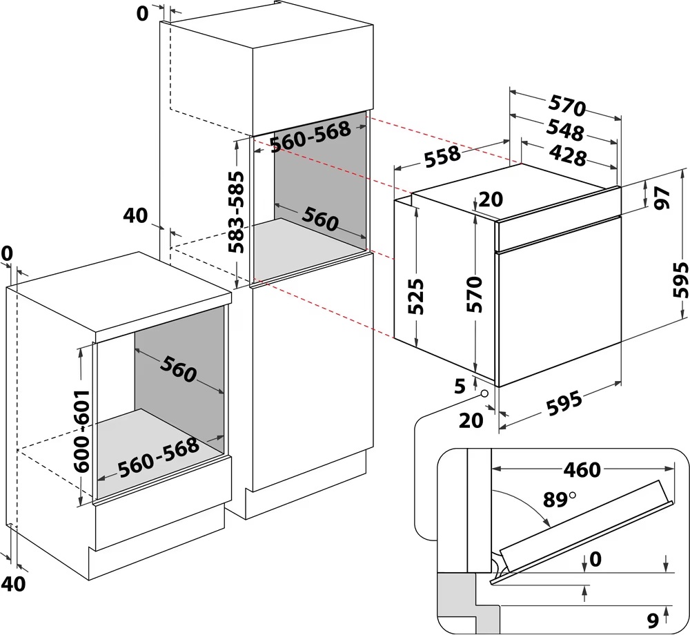 - ▪ Розміри ніші: 58.3–58.5 × 56–56.8 × 56 см