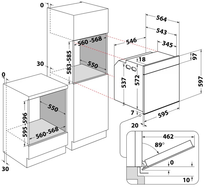 - ▪ Розміри вбудування (ВхШхГ): 58,3 × 56 × 55 см