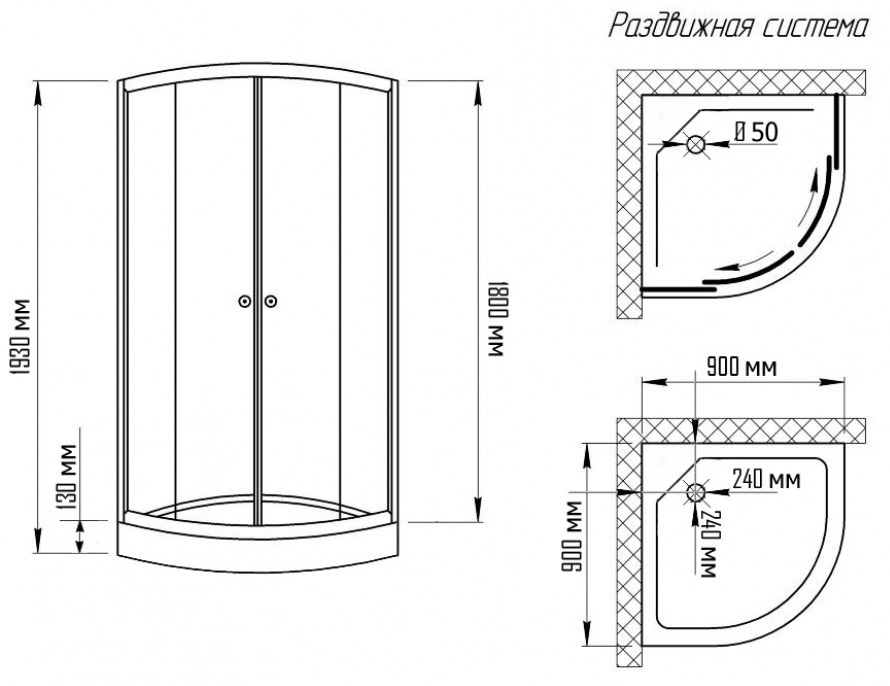 - ▪ Розміри (Ш×Г×В): 900×900×1930 мм