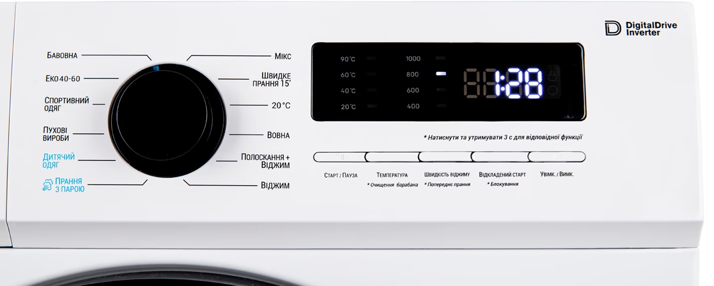 - ▪ Основні програми: бавовна ▪ еко бавовна ▪ синтетика ▪ вовна ▪ швидке прання 15 хв