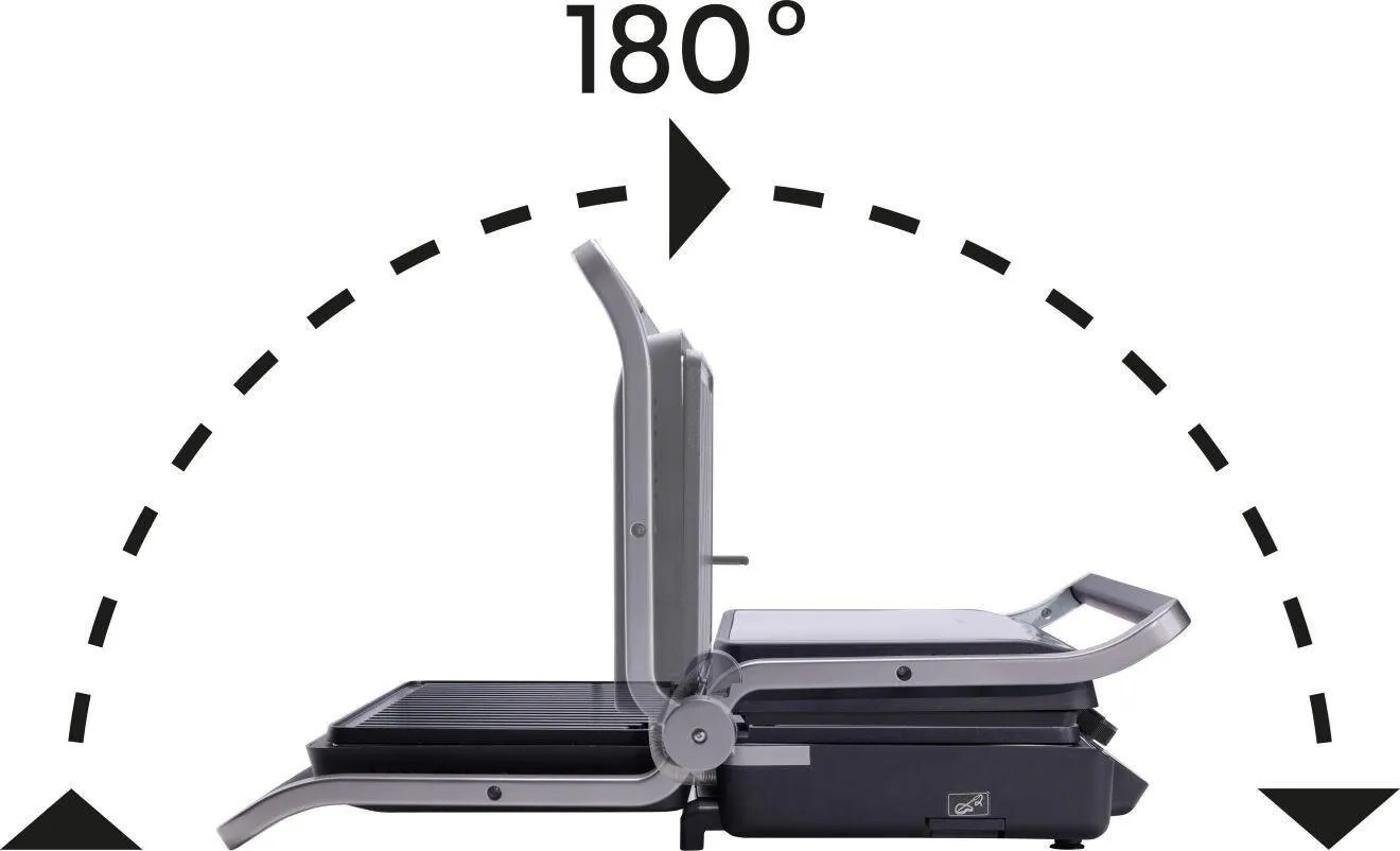 Так, HISENSE HCG2000XXL розкривається на 180°, дозволяючи використовувати обидві пластини одночасно як відкриту поверхню для гриля.