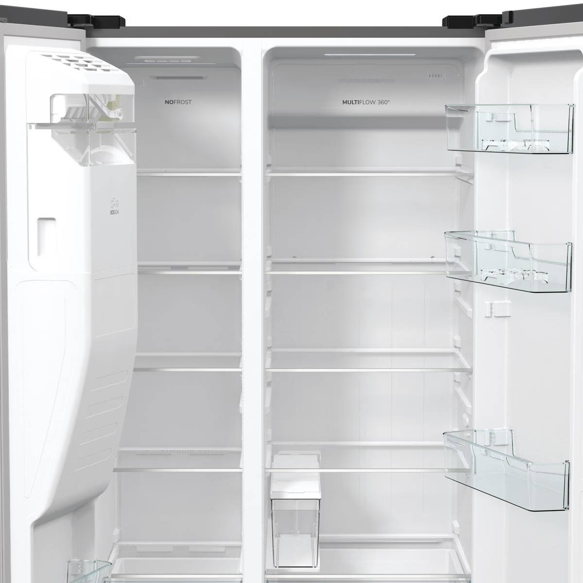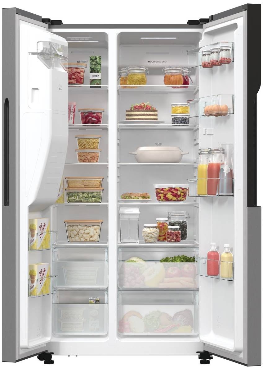 GORENJE NRR9185ESXL — місткий холодильник формату Side-by-Side із системою повного No Frost, інверторним компресором і зручним диспенсером. Великий внутрішній об’єм, сучасні функції та продумана організація камер роблять модель практичним рішенням для великої родини або для тих, кому потрібно багато місця для зберігання продуктів.