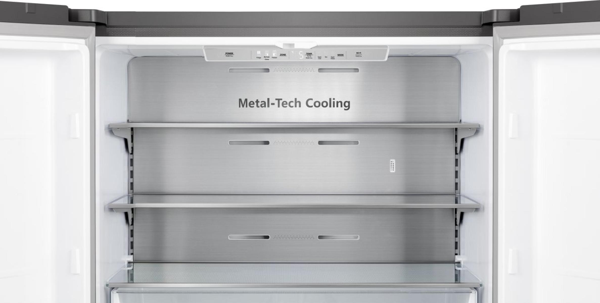 - ▪ Metal Cooling — задня панель із нержавіючої сталі забезпечує рівномірний розподіл холодного повітря та стабільну вологість.