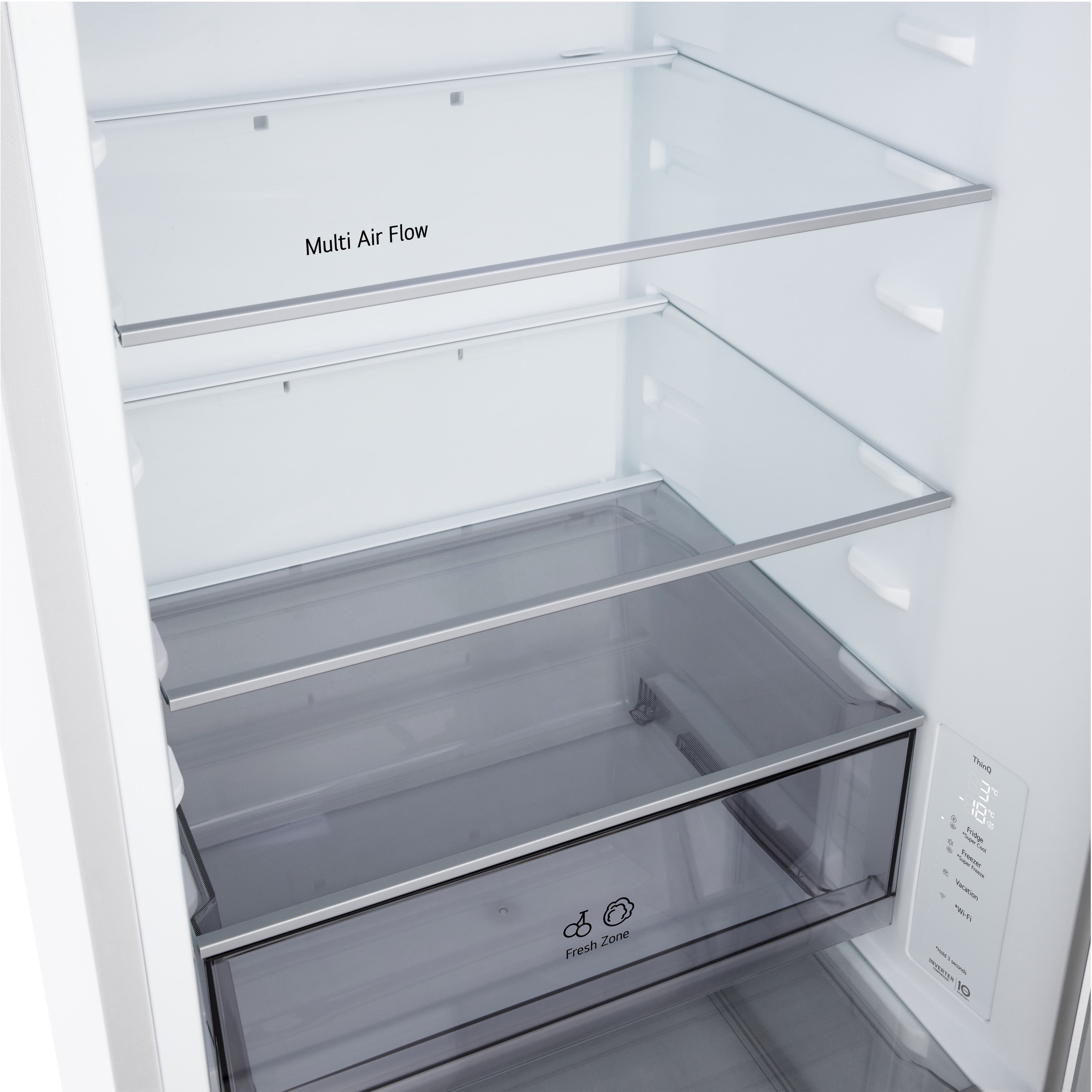 LG GC-B459EQYM — окремостоячий холодильник із загальним корисним об’ємом 333 л, який поєднує повну систему No Frost у двох камерах, інверторний компресор та електронне керування. Об’єм 220 л у холодильному відділенні та 113 л у морозильному дозволяє зручно організувати зберігання продуктів для родини. Рівень шуму 35 дБ забезпечує тиху роботу, а білий колір і приховані горизонтальні ручки підтримують лаконічний вигляд кухні.