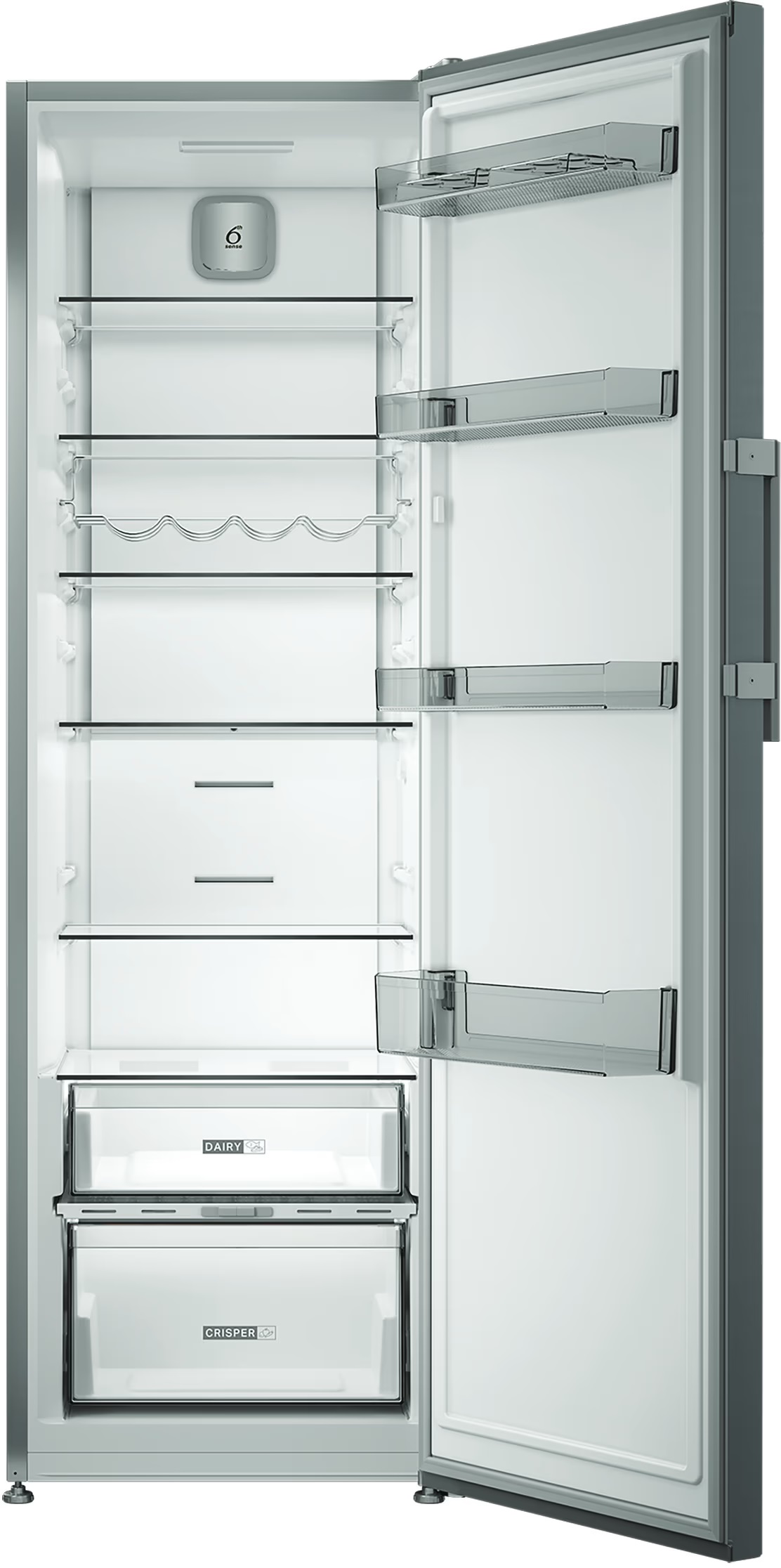 Модель орієнтована на тих, кому важлива велика холодильна камера без морозильного відділення. Завдяки об’єму 365 л, системі No Frost та інверторному компресору холодильник забезпечує стабільне охолодження, зручну організацію продуктів і мінімальний догляд у повсякденному використанні.