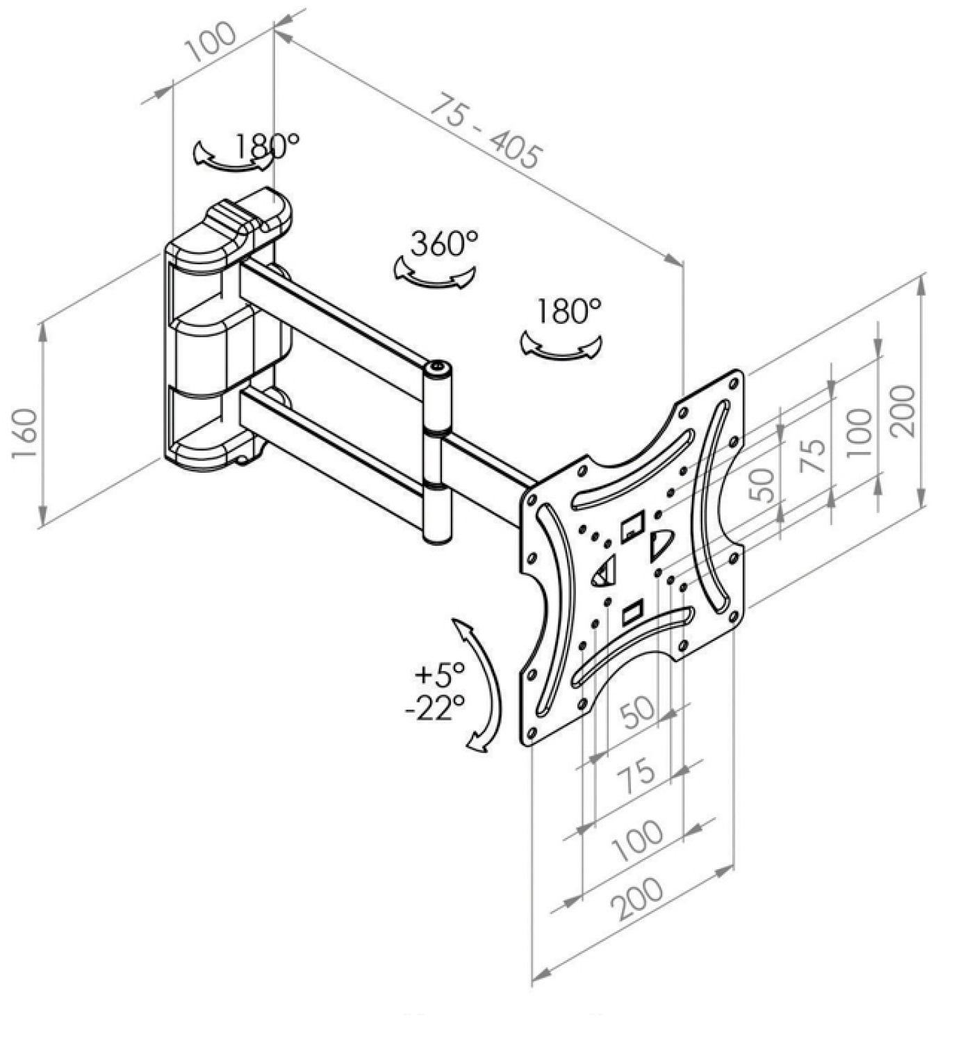 - ▪ Розміри плати кріплення ТВ: 220×220 мм