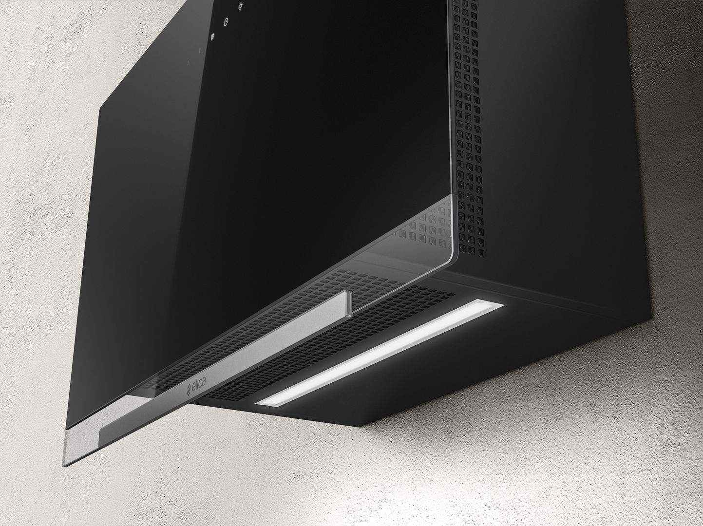 Кухонна витяжка Elica APLOMB BL/A/60 створена для тих, хто прагне поєднання стильного інтер'єру та максимально ефективного очищення повітря. Нахилена конструкція забезпечує зручність користування, а потужність до 1360 м³/год дозволяє швидко видалити запахи навіть під час інтенсивного приготування. Модель органічно вписується у сучасні кухні завдяки чорному скляному декору та лаконічним лініям.