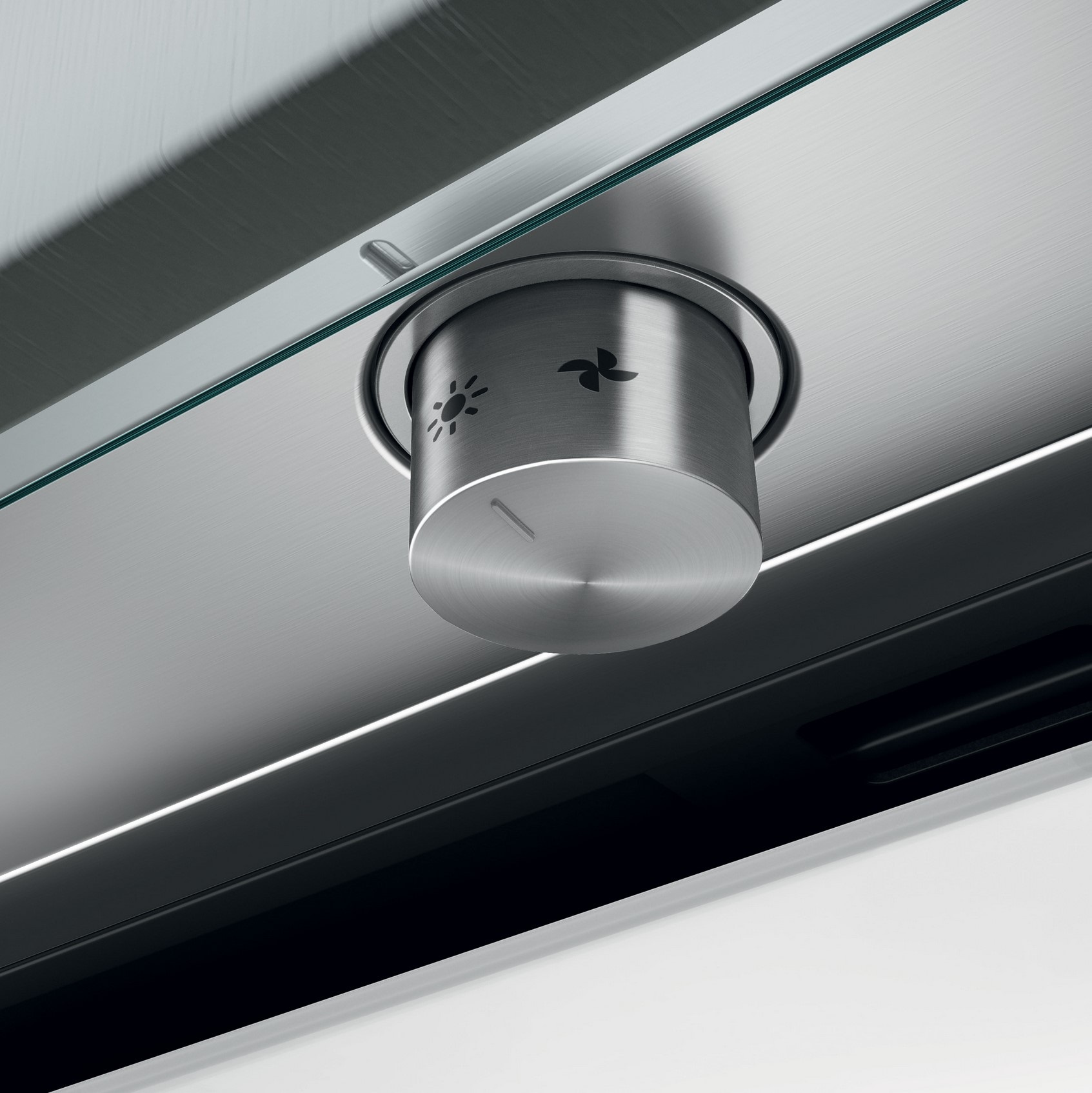 Ця витяжка має прямокутну форму та повністю інтегрується у підвісну кухонну шафу, залишаючи зовні лише акуратну робочу поверхню. Завдяки стриманому оформленню у сріблястому кольорі модель легко поєднується з будь-яким кухонним гарнітуром — як класичним, так і сучасним. Власники відзначають, що вона не привертає уваги та органічно зливається з інтер’єром, водночас забезпечуючи ефективну роботу в різних режимах.
