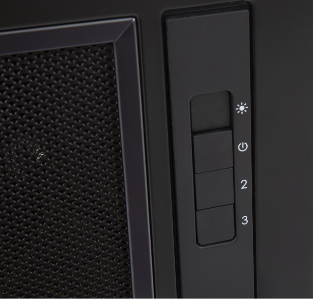 - ▪ Повне вбудовування — витяжка залишається непомітною в інтер’єрі та не займає зайвого місця.