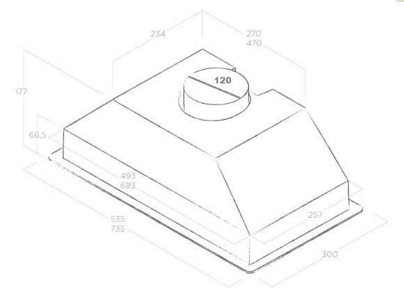 - ▪ Розміри (В×Ш×Г): 177 × 535 × 300 мм