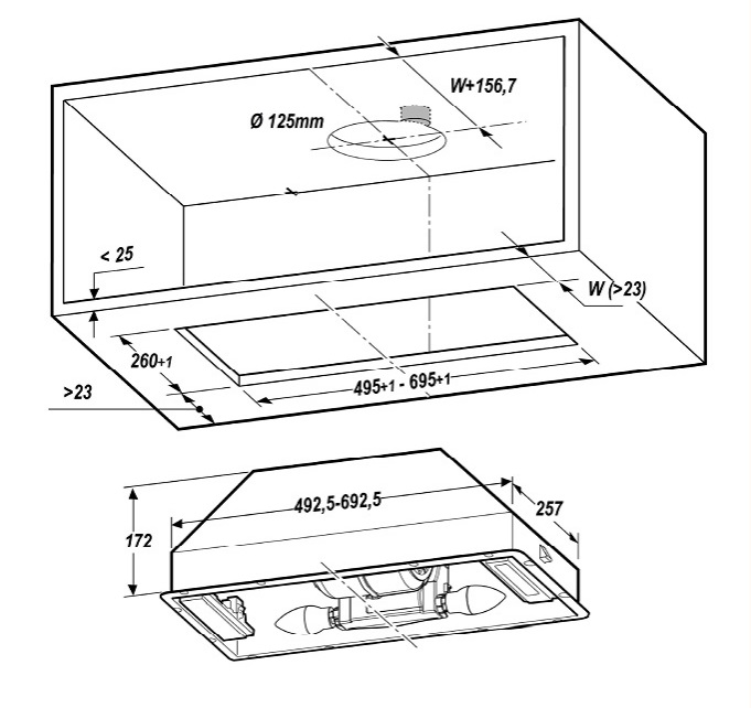 - ▪ Повновбудована конструкція — прилад непомітно інтегрується в шафу, не порушуючи дизайн кухні.
