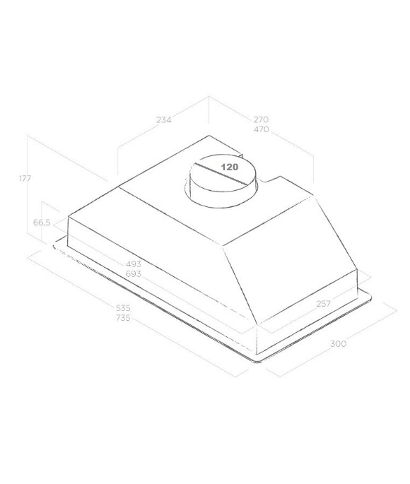 - ▪ Розміри (В×Ш×Г): 177 × 535 × 300 мм