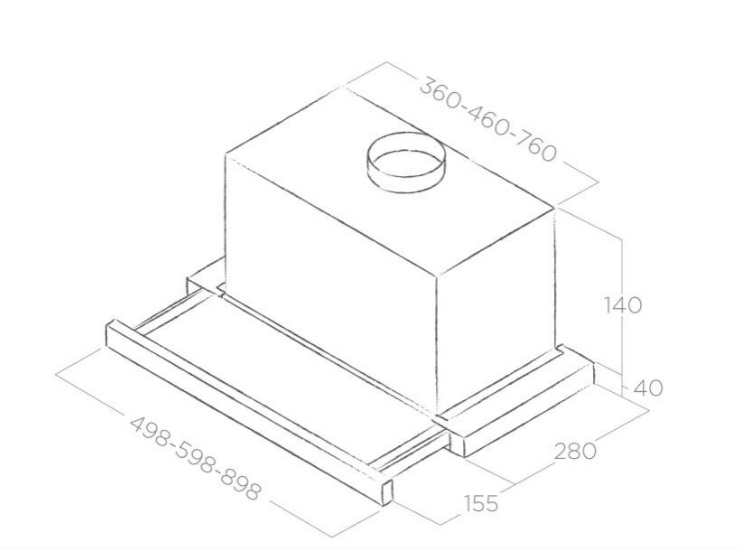 - ▪ Телескопічна конструкція — витяжка зручно висувається під час роботи та не перевантажує кухонний інтер’єр.