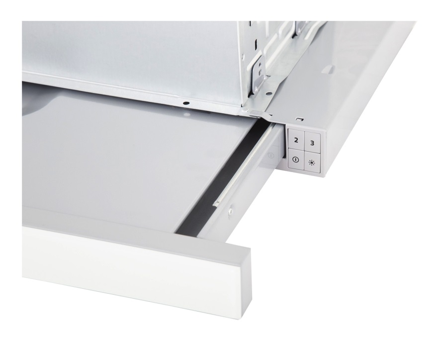 - ▪ Телескопічна конструкція — витяжка компактно вбудовується в шафу та зручно висувається під час роботи.