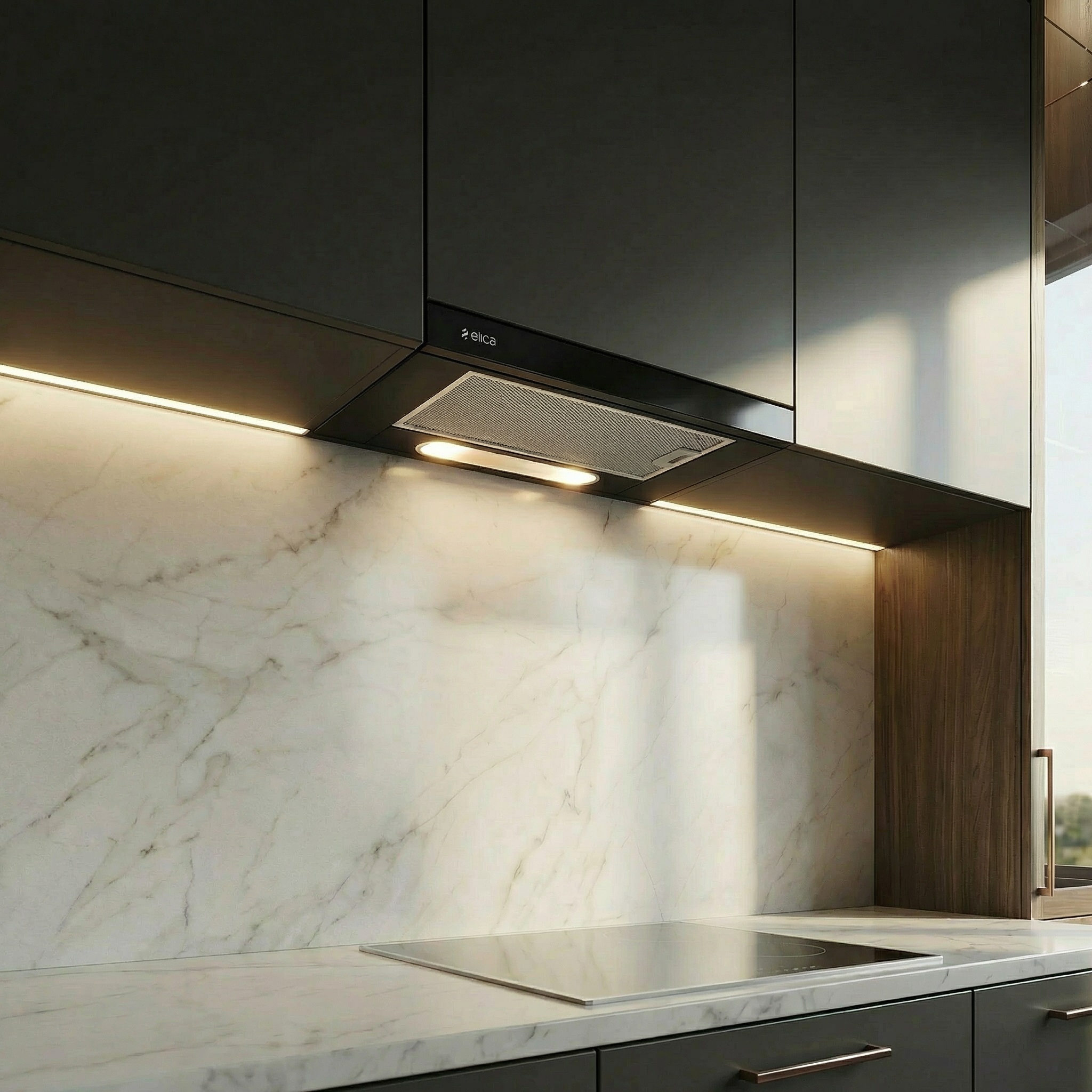 Кухонна витяжка Elica TT14 PLUS BL/A/60 — це зручне рішення для тих, хто хоче зберегти більше корисного простору в кухонній шафі та водночас отримати ефективне очищення повітря під час щоденного приготування їжі. Телескопічна конструкція дозволяє витяжці залишатися максимально непомітною в інтер’єрі, а висувна панель забезпечує зручний доступ до робочої зони саме тоді, коли це потрібно. Такий формат особливо практичний для сучасних кухонь, де цінується функціональність без перевантаження меблевого гарнітура.