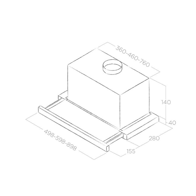 - ▪ Телескопічна конструкція — витяжка займає мінімум візуального простору та зручно висувається під час роботи.