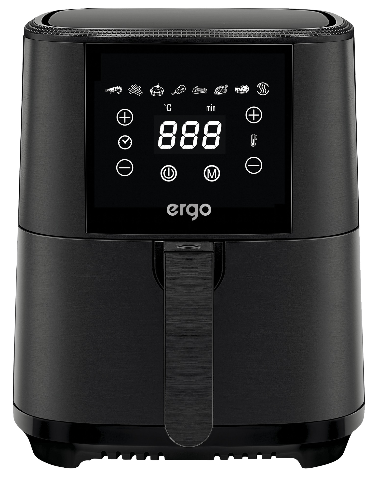 ERGO AF-2501 — це стильна мультипіч з функцією аерогриля, що дозволяє готувати смачні страви з мінімальним використанням олії або зовсім без неї. Модель оснащена потужністю 1500 Вт і об'ємом 4,8 літра, чого цілком достатньо для щоденного використання вдома або на дачі.