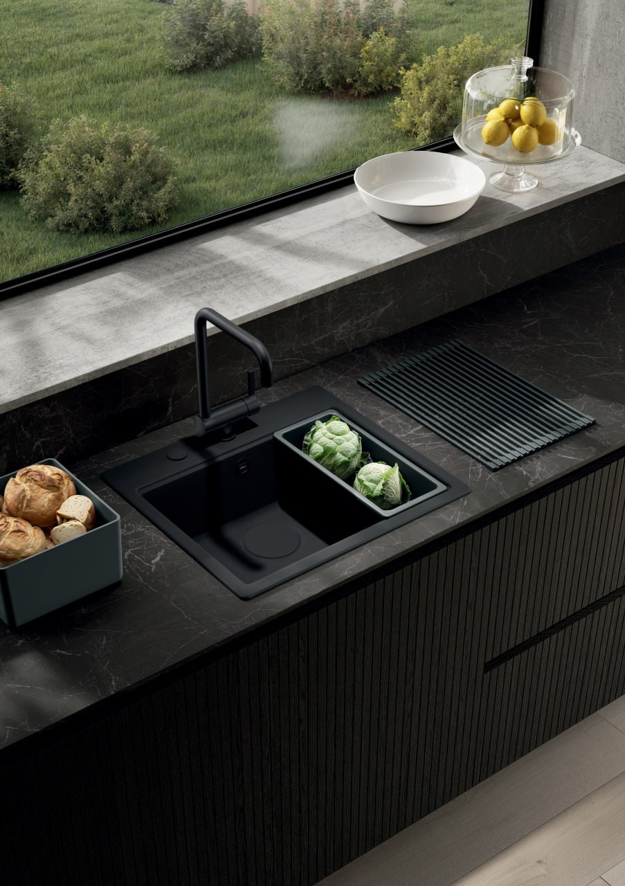 - ▪ Мийка підійде як для кварцитових, так і ламінованих стільниць